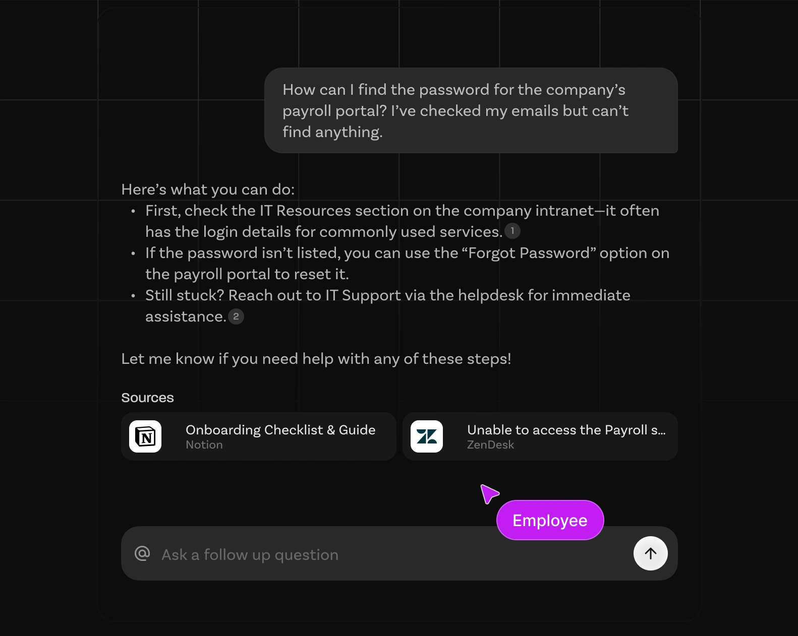 Simple queries that should take seconds to resolve can turn into hours of collective time as new hires navigate unfamiliar organizational landscapes.